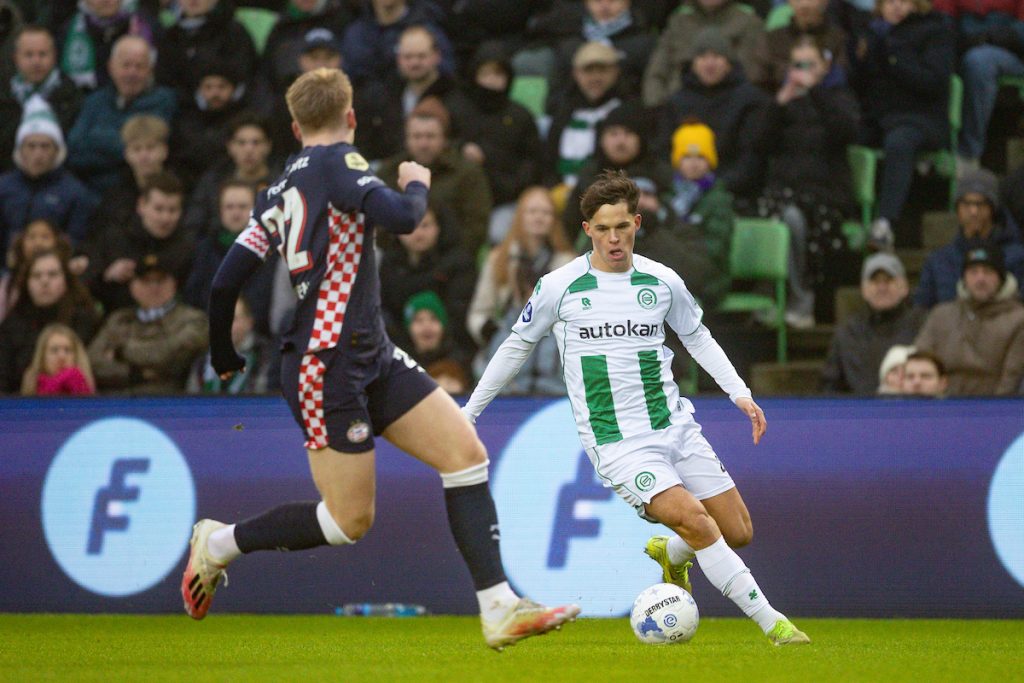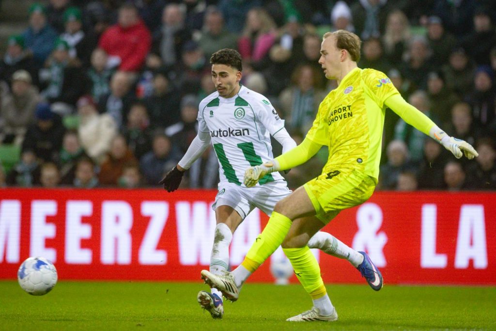 FC Groningen heeft zondagmiddag nipt verloren van koploper PSV, 1-2. De Trots van het Noorden stond bij rust op voorsprong tegen de regerend landskampioen door een treffer van Younes Taha. Na de pauze scoorden Ismael Saibari en Dennis Man voor de Eindhovenaren. De 17-jarige Ryan Metu, afkomstig uit de Opleiding, debuteerde als invaller voor de FC.