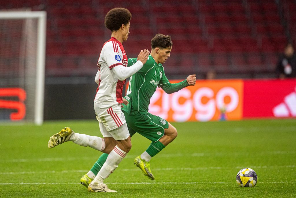 Ajax zette de FC in minuut 28 op achterstand. De thuisploeg schakelde snel om en counterde zich via de snelle Mika Godts door de Groningse verdediging heen. De Belg omspeelde Etienne Vaessen en schoot raak, 1-0.