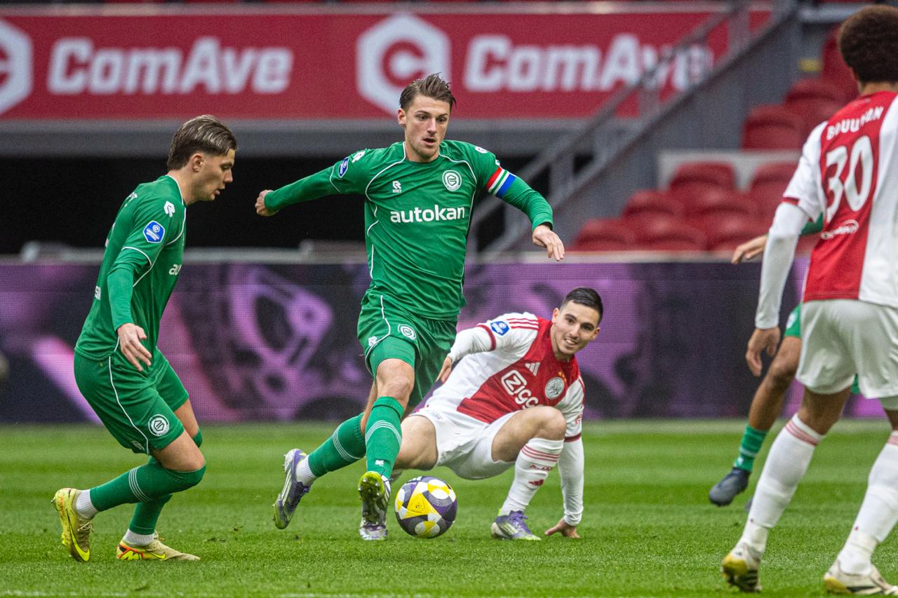FC Groningen heeft dinsdagmiddag in de Johan Cruijff ArenA met 2-0 verloren van Ajax. Het restant van het duel dat zondagavond begon, werd dinsdagmiddag in een leeg stadion uitgespeeld. Mika Godts en Aaron Bouwman scoorden voor de Amsterdammers. Nils Eggens maakte zijn Eredivisiedebuut voor FC Groningen.