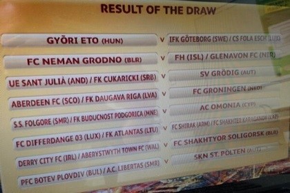 FC Groningen heeft voor het Europese seizoen op donderdag 17 juli een uitwedstrijd geloot tegen de winnaar van Aberdeen (Schotland) tegen Daugava Riga (Letland). De return is dan donderdag 24 juli in Euroborg. De definitieve speeldag en aanvangstijd worden later deze week kenbaar gemaakt.