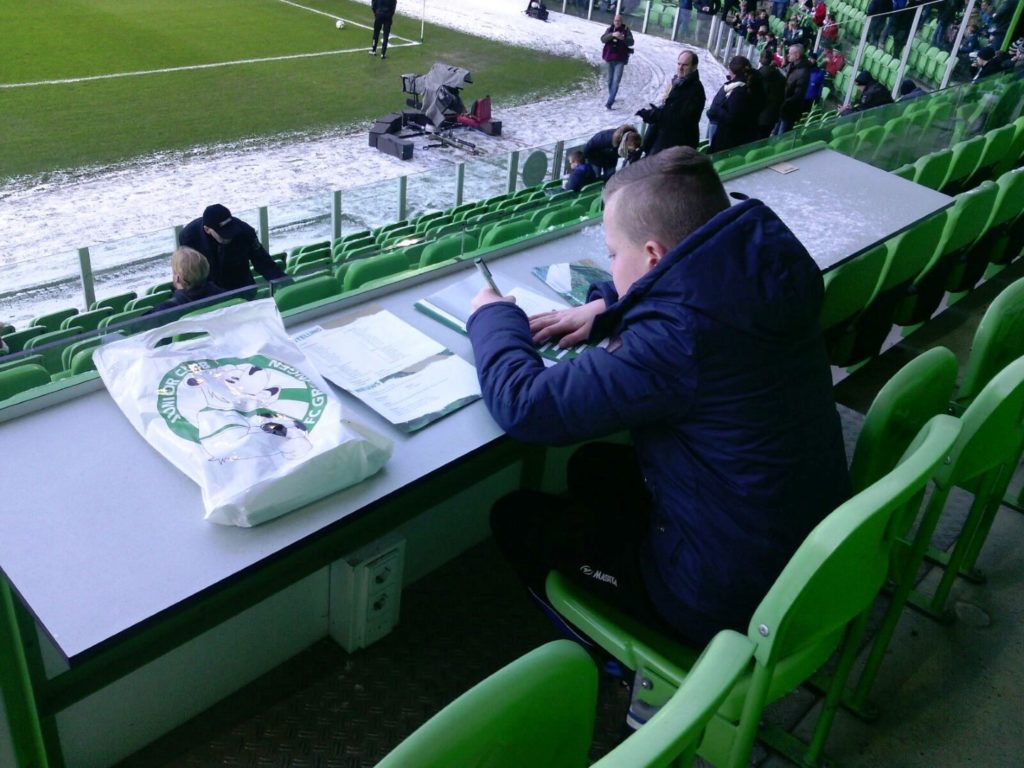Junior Reporter Huub Blaauw schrijft verslag van de wedstrijd