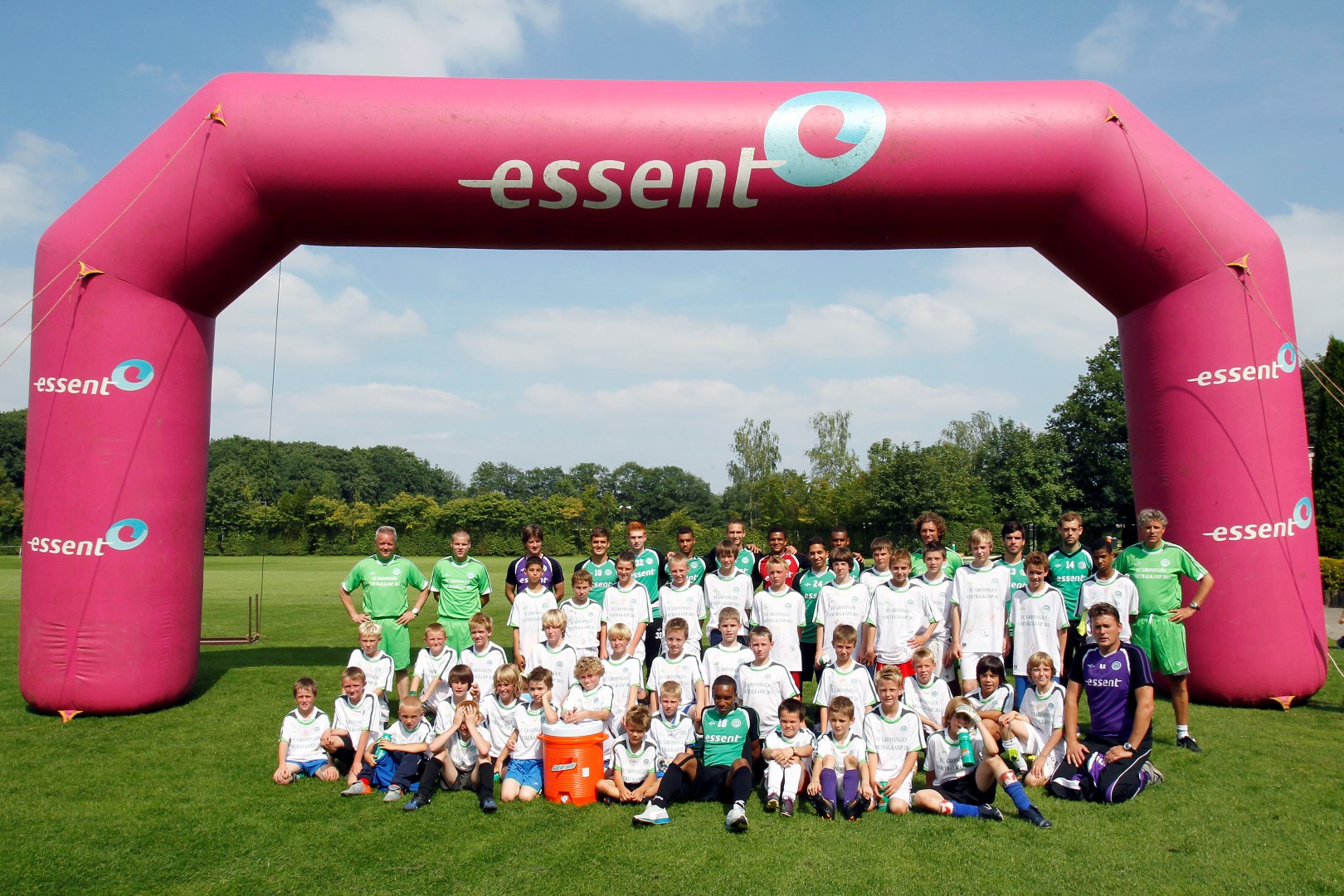 Deze week nemen ruim veertig kinderen in de leeftijd van 8 tot 14 jaar deel aan de tweede week van het FC Groningen Voetbalkamp in Norg. Maandagmiddag kwamen trainer Pieter Huistra en diverse spelers van de eerste selectie meetrainen.