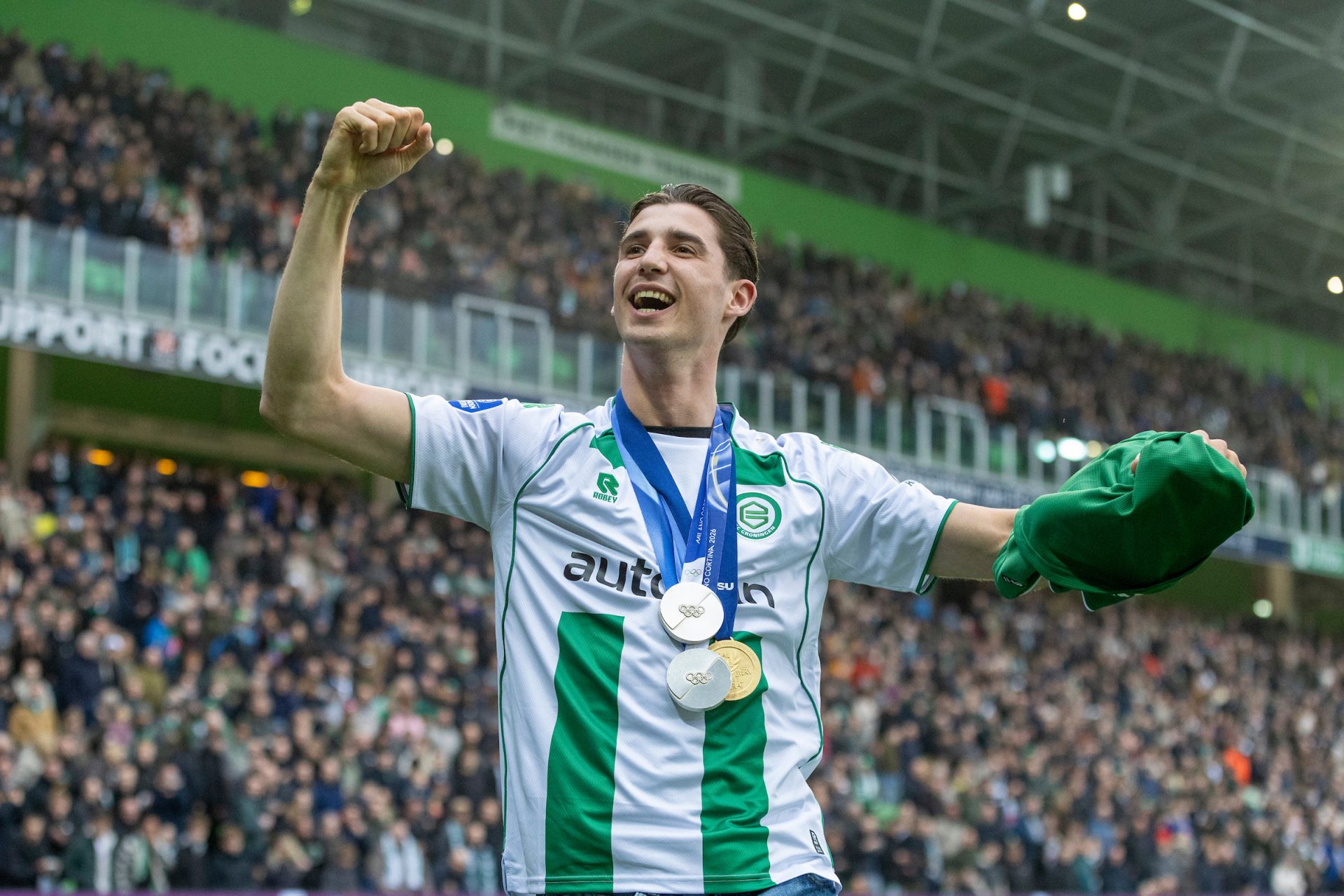 FC Groningen versloeg Ajax zaterdagmiddag met 3-1 in een uitzinnig Euroborg. Een bijzondere middag in een uitverkocht huis waarbij sfeer, strijd en succes samenkwamen. In de rust van het duel werd topschaatser en FC-supporter Jenning de Boo gehuldigd.