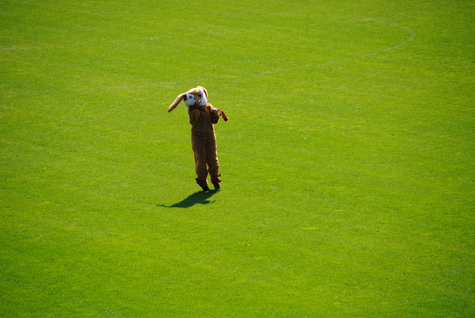 Na deze melding werd er snel actie ondernomen om uit te zoeken wat deze onbekende figuur deed op het veld. En wat bleek? De paashaas was alvast begonnen met het verstoppen van de paaseieren voor de kinderactiviteit van morgen!