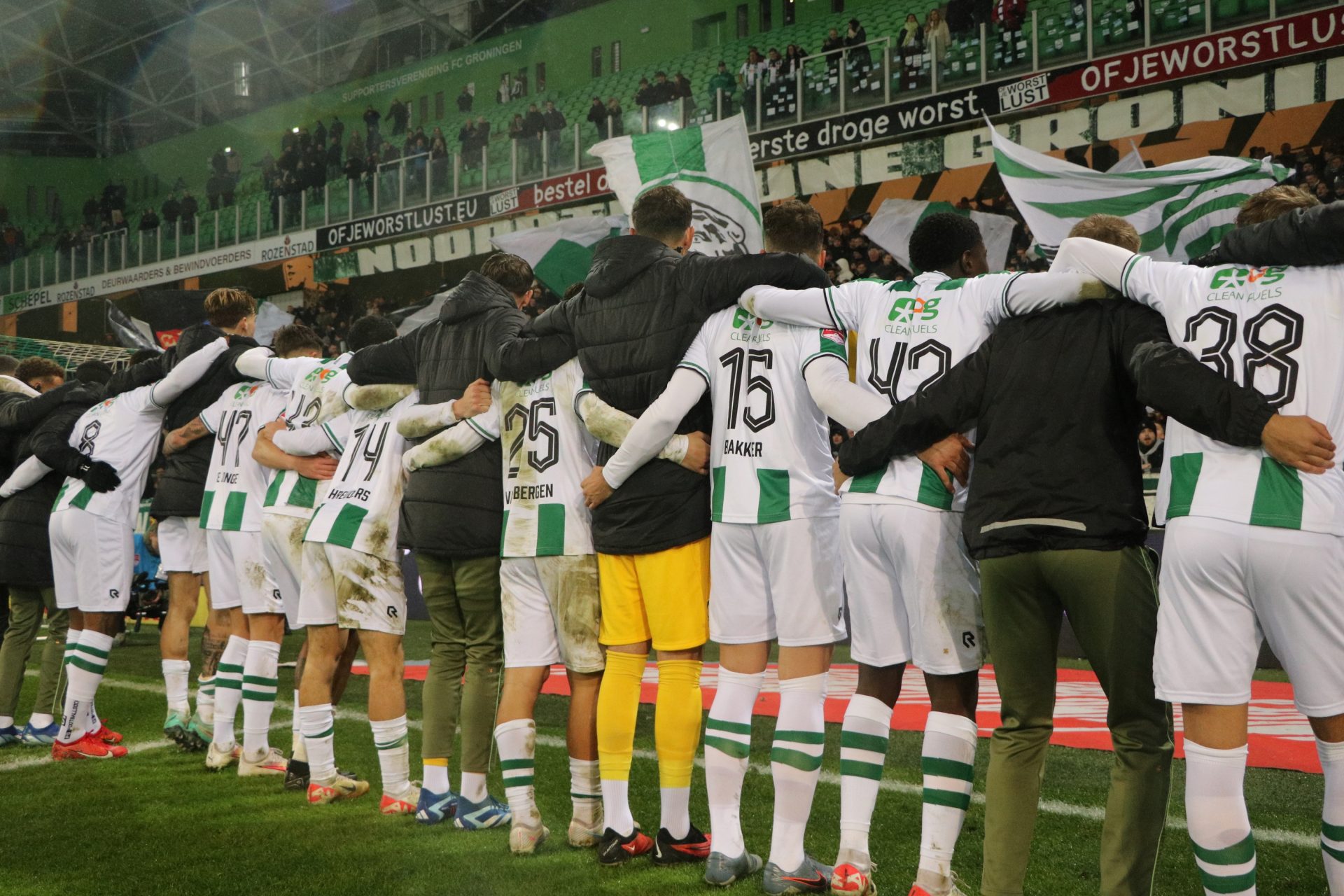 De Tonny van Leeuwen Tribune is dit seizoen geheel uitverkocht, op de Koeman Tribune en de Piet Fransen Tribune is in verschillende vakken nog plaats naast elkaar beschikbaar. De FC Groningen Ticketshop is te bereiken via https://tickets.fcgroningen.nl. Seizoenkaarthouders op alle publiekstribunes kunnen ook via de FC Groningen App naar binnen. De app is te downloaden via Google Play en de Appstore.